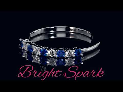 Золотое кольцо с дорожкой из муассанитов и сапфиров Embrace на 0,3 карат на видео: